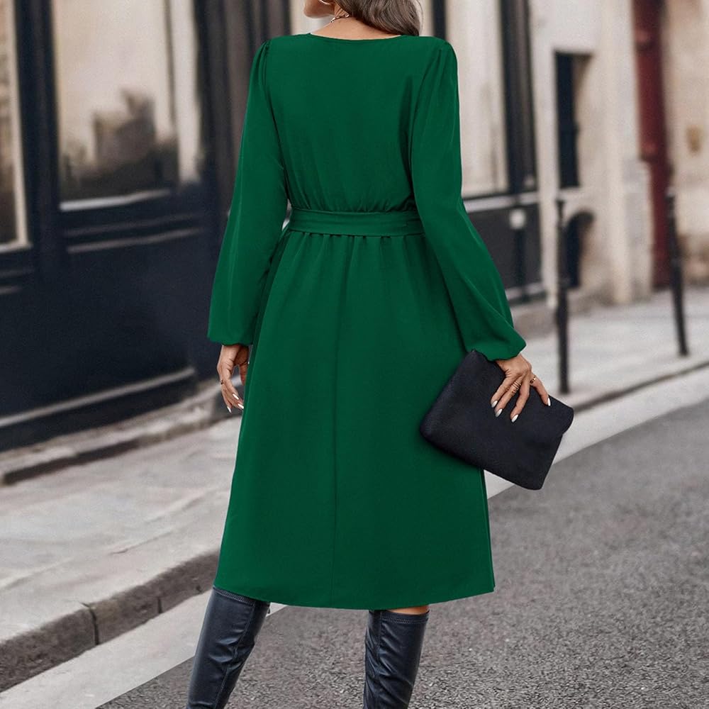 Style this green midi dress with boots and a blazer for office wear. Pair it with heels and statement jewelry for parties, weddings, or date nights. Its versatile design transitions effortlessly from workwear chic to weekend elegance.