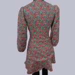 This midi dress features a rich crimson base decorated with delicate green floral embroidery. Skilled artisans carefully stitch each motif to create a refined and eye-catching pattern. The detailed craftsmanship adds charm while maintaining a graceful and balanced look. Its boho-inspired aesthetic feels elegant yet effortless.